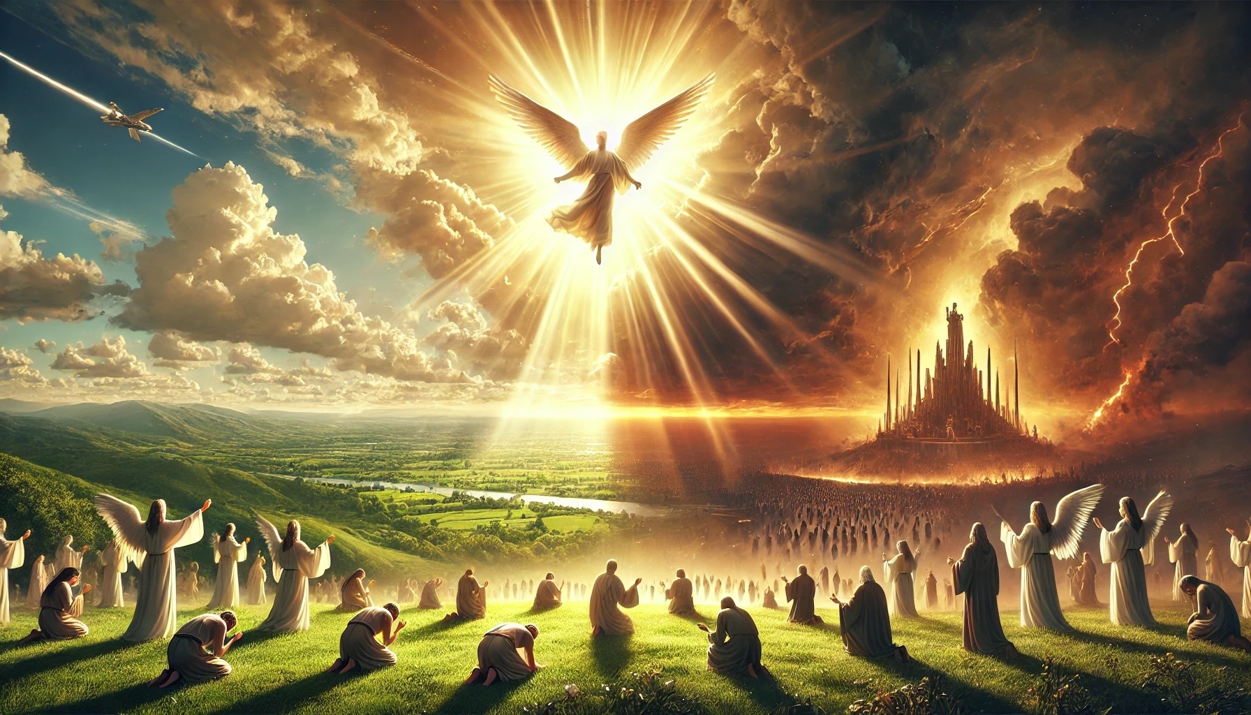 «Y vi a otro ángel volar en medio del cielo,que tenía un evangelio eterno, para anunciarlo a los moradores de la tierra… y decía a gran voz: Temed a Dios y dadle gloria, porque la hora de su juicio ha llegado; y adorad a aquel que hizo el cielo y la tierra, el mar y las fuentes de las aguas.»