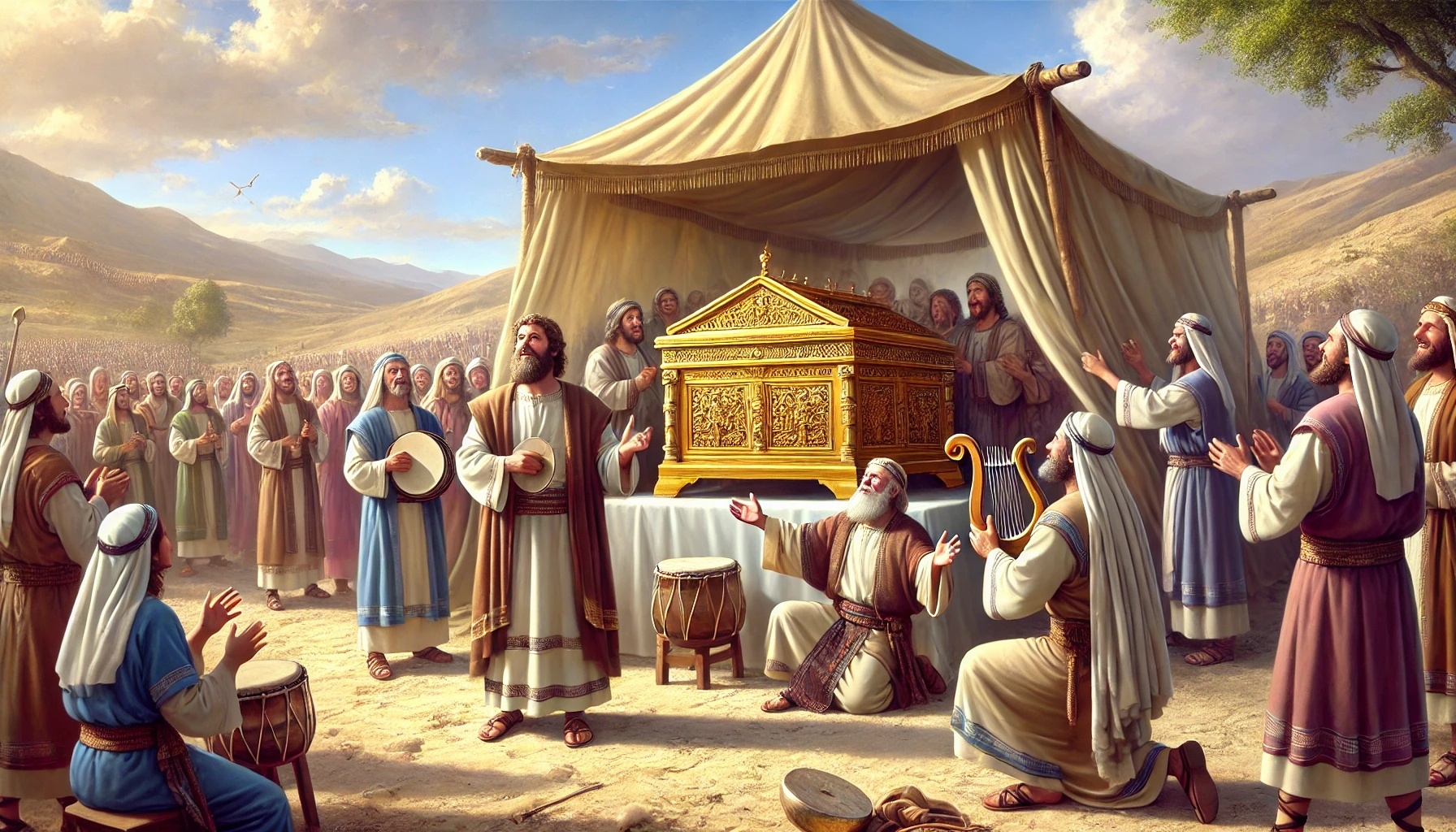 El arca ha encontrado su lugar. Lo que antes comenzó con temor e incertidumbre ahora termina en alegría y paz. David instala una tienda para el arca y organiza el servicio a su alrededor.