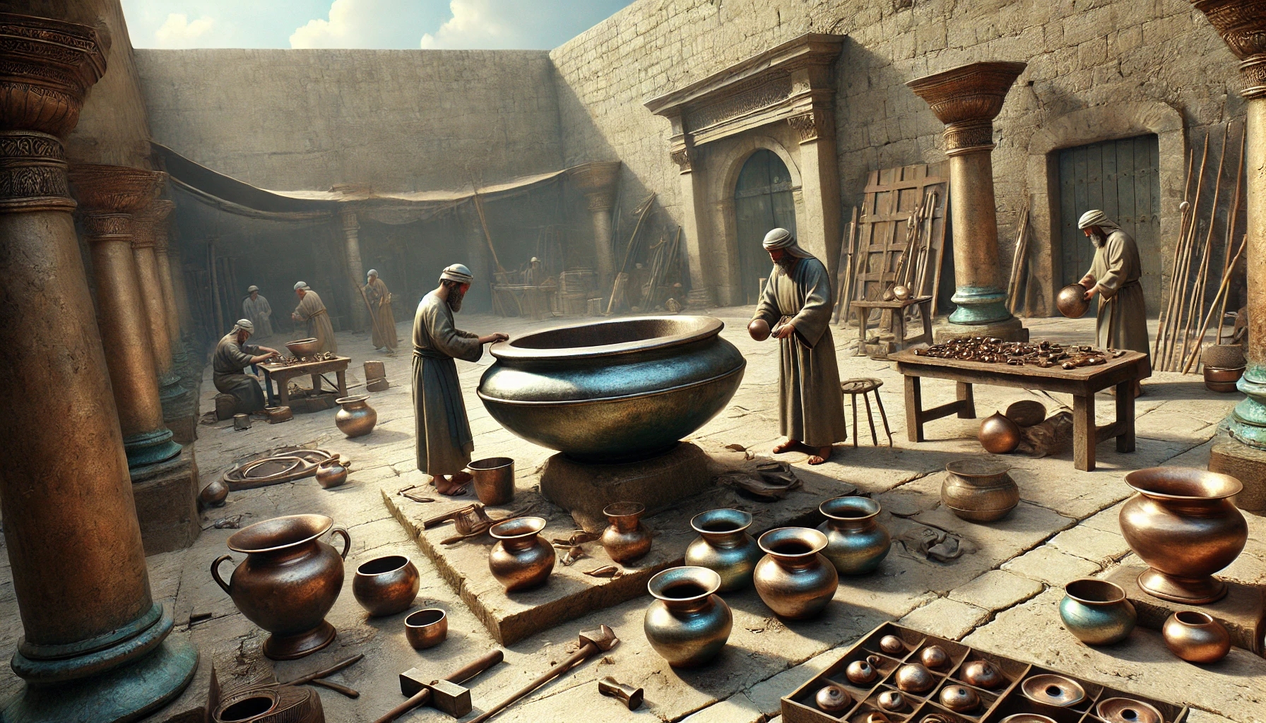 El templo está en pie — pero aún no está completo. Ahora se trata de llenarlo de vida. Utensilios, altares, recipientes, candelabros — todo se fabrica y se coloca en su lugar.